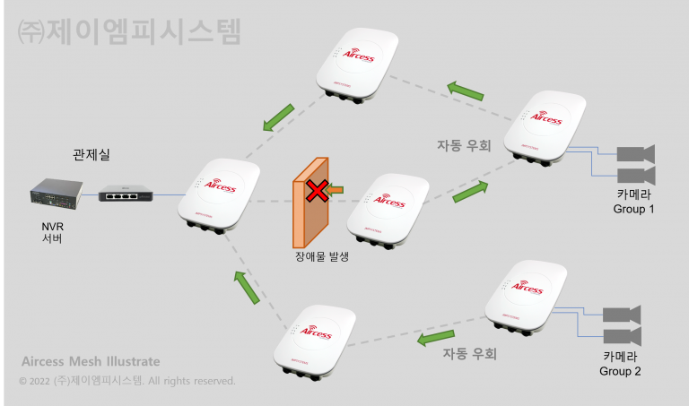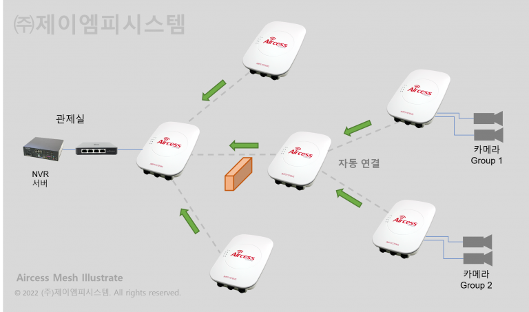 듀얼 무선 실외 AP 이용 무선 중계네트워크 구축